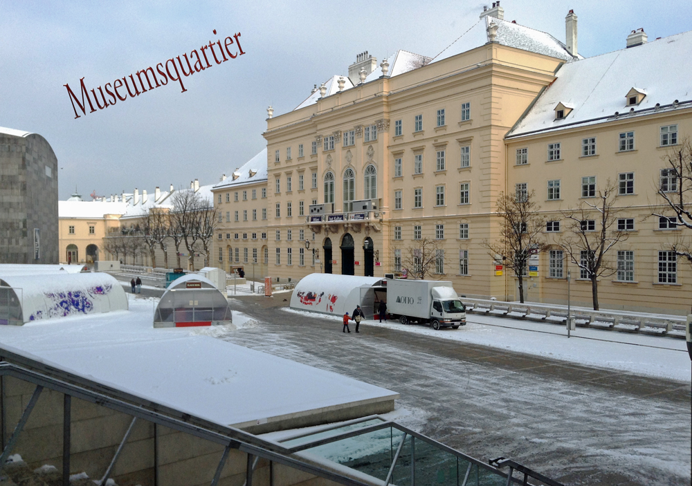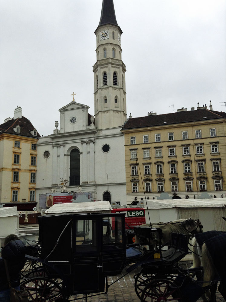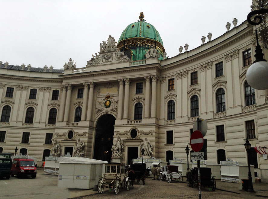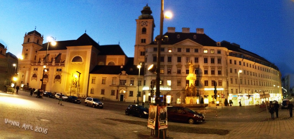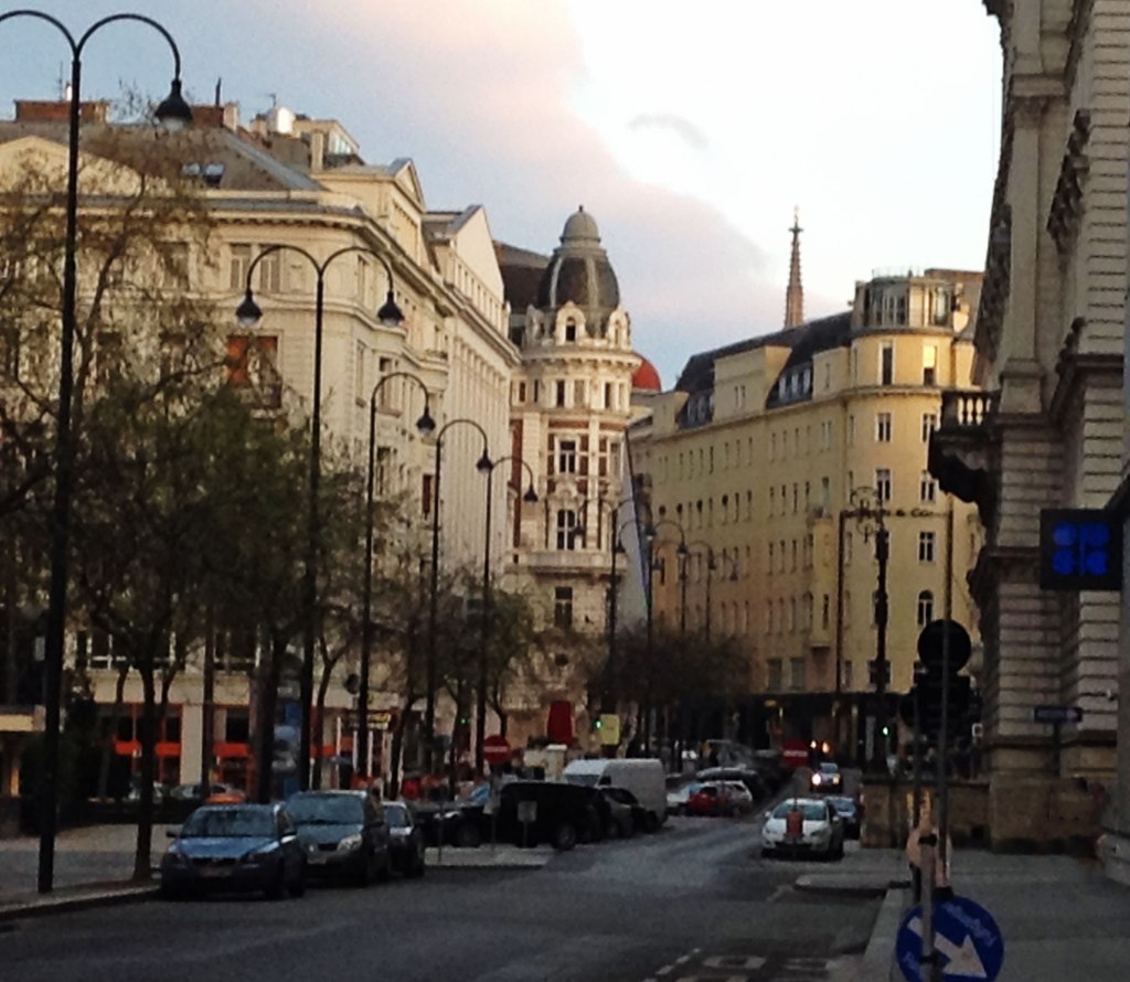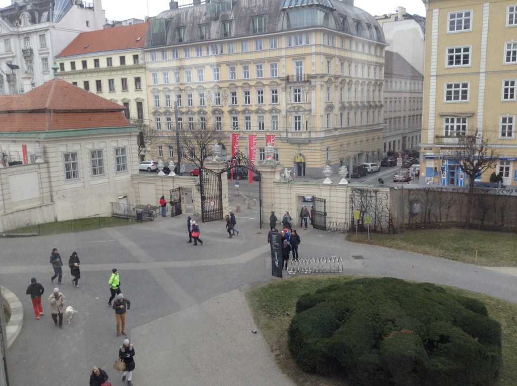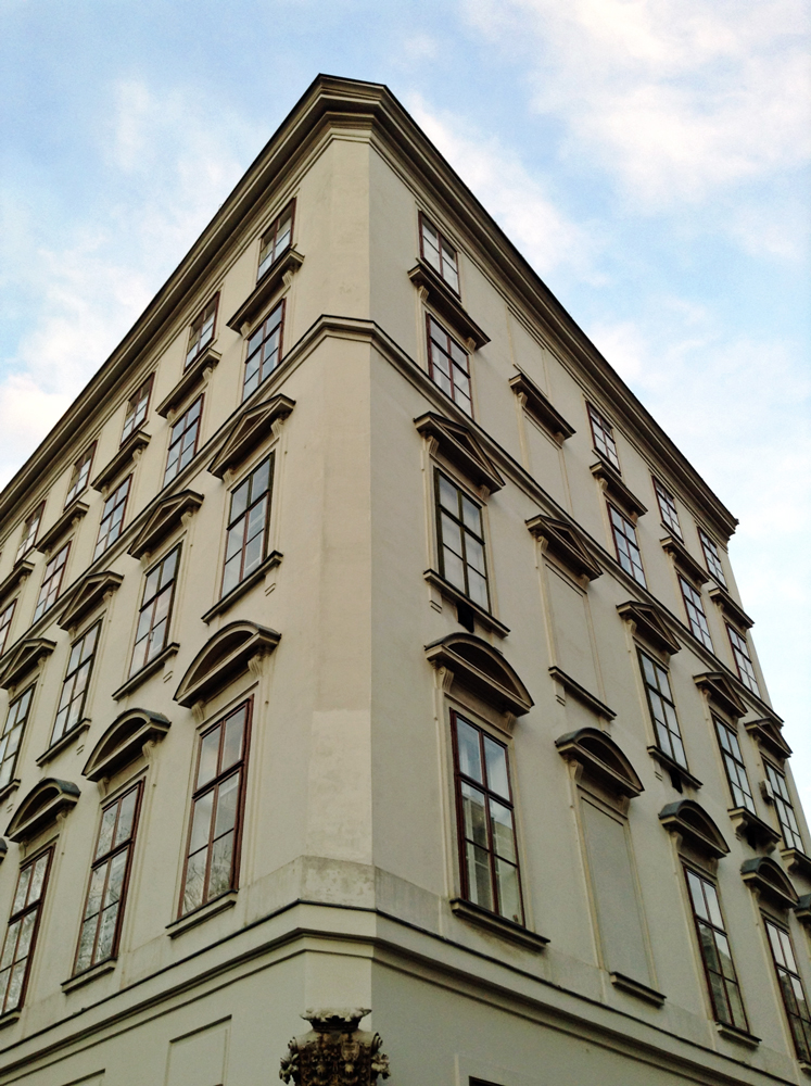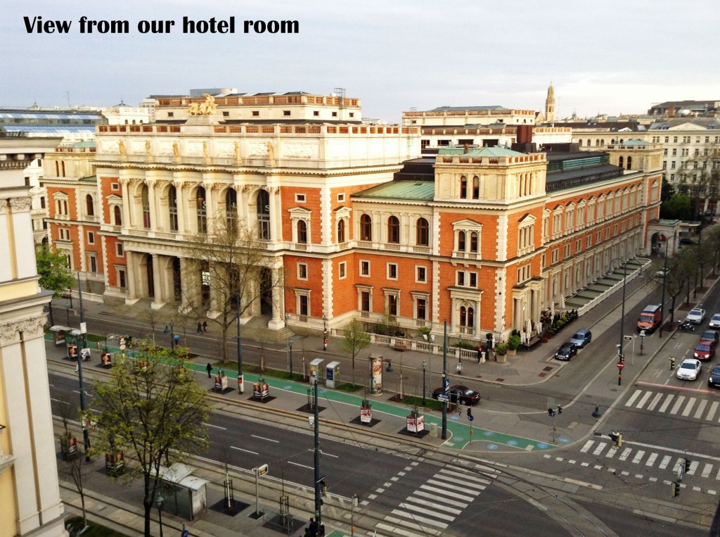 The building in the foreground is the BORSE. (Vienna Stock Exchange building). We stayed in the same room on both occasions.