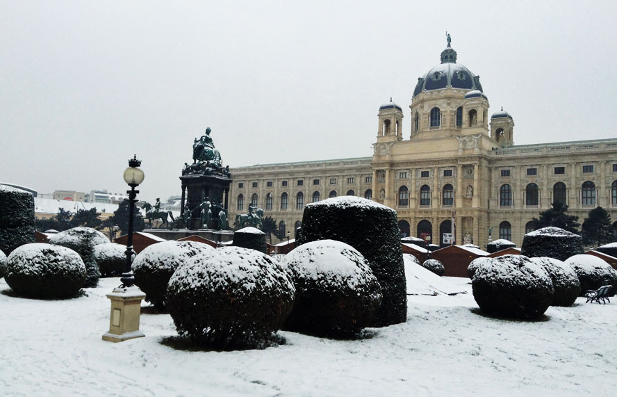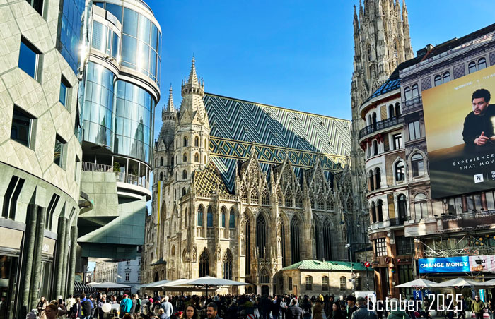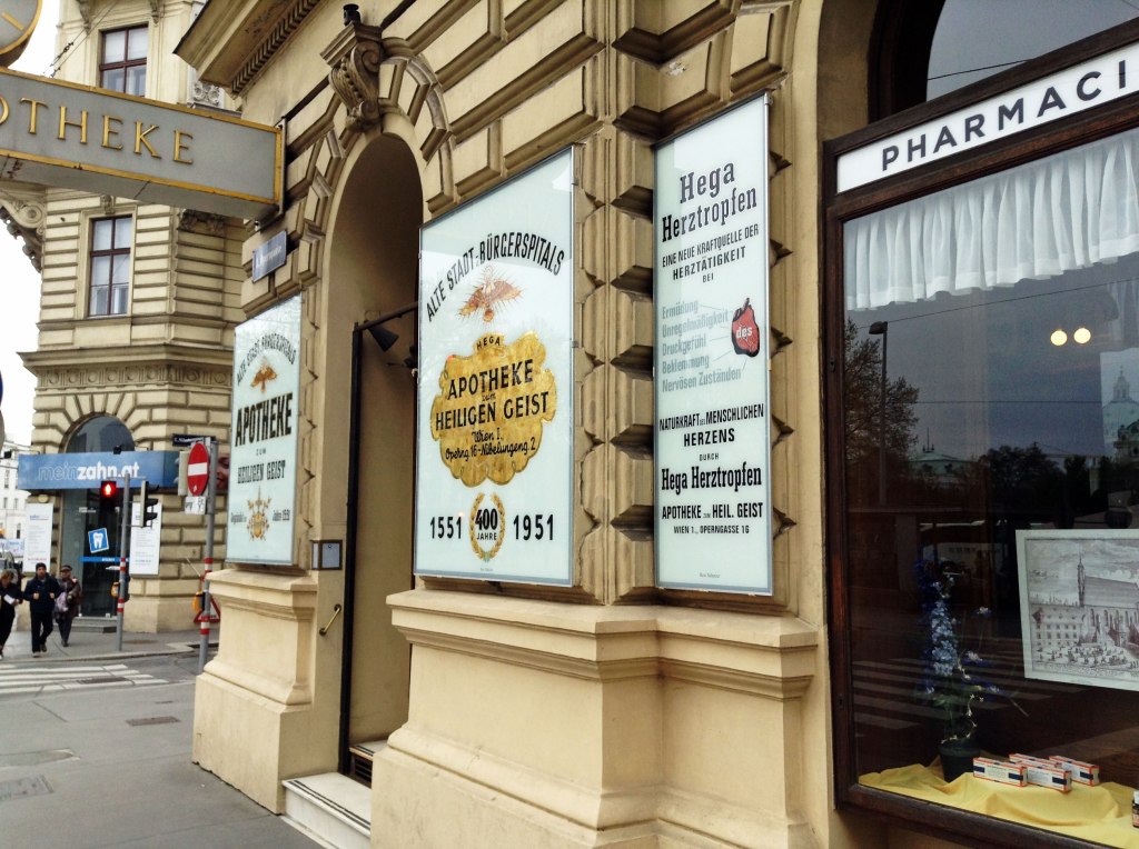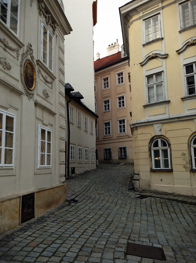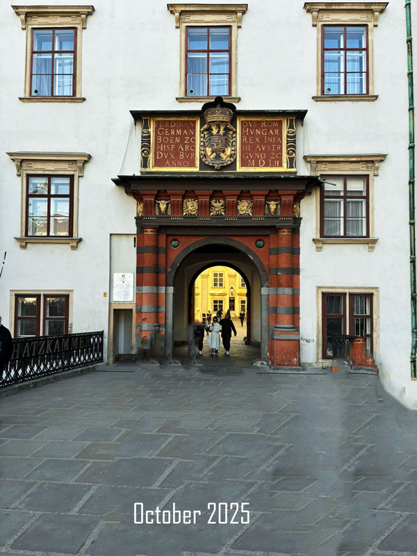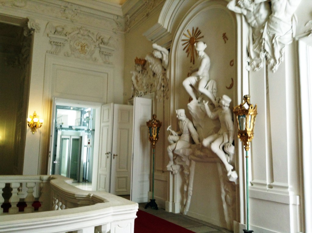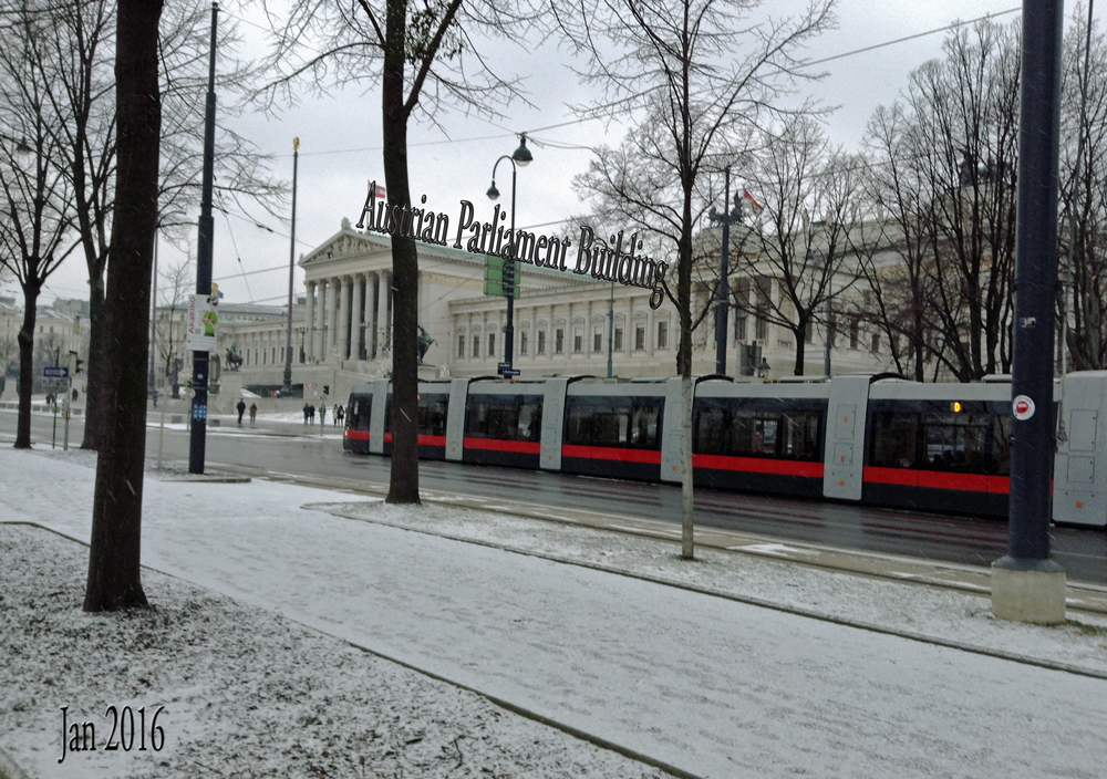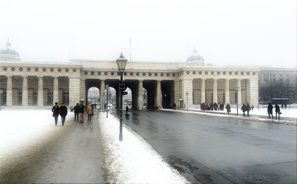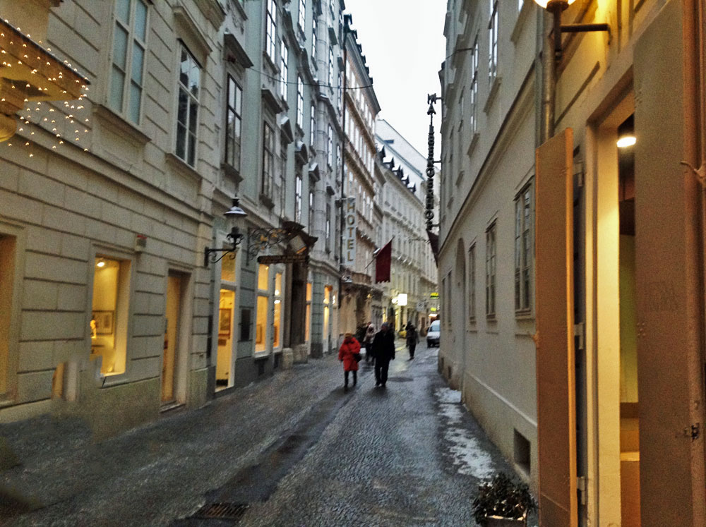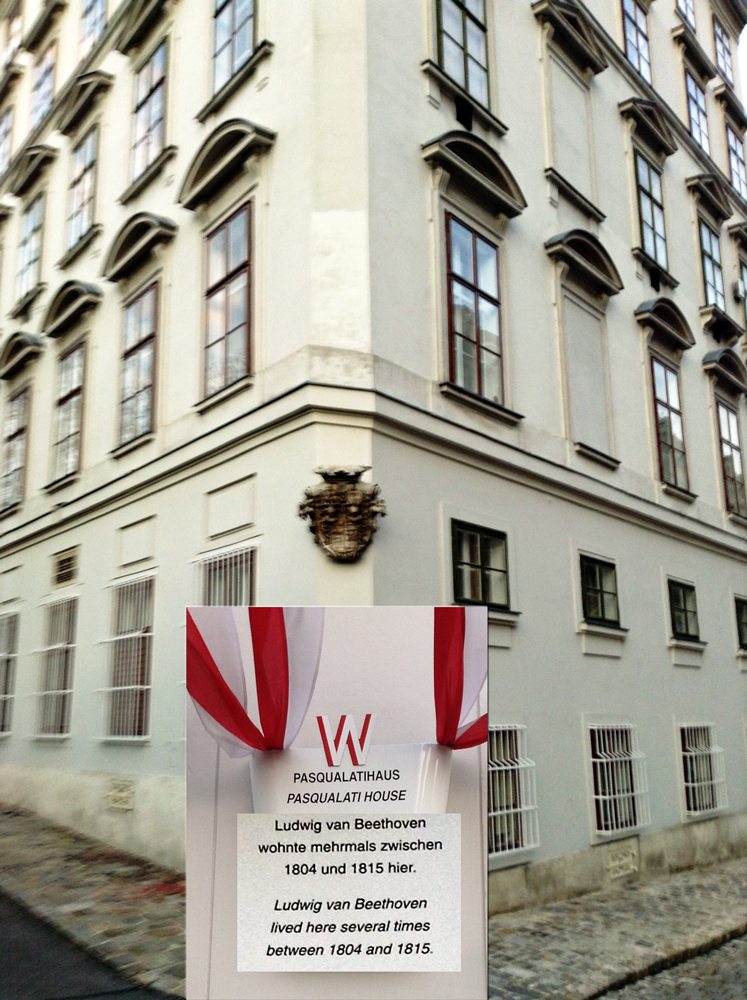 The building in the foreground is the BORSE. (Vienna Stock Exchange building). We stayed in the same room on both occasions.