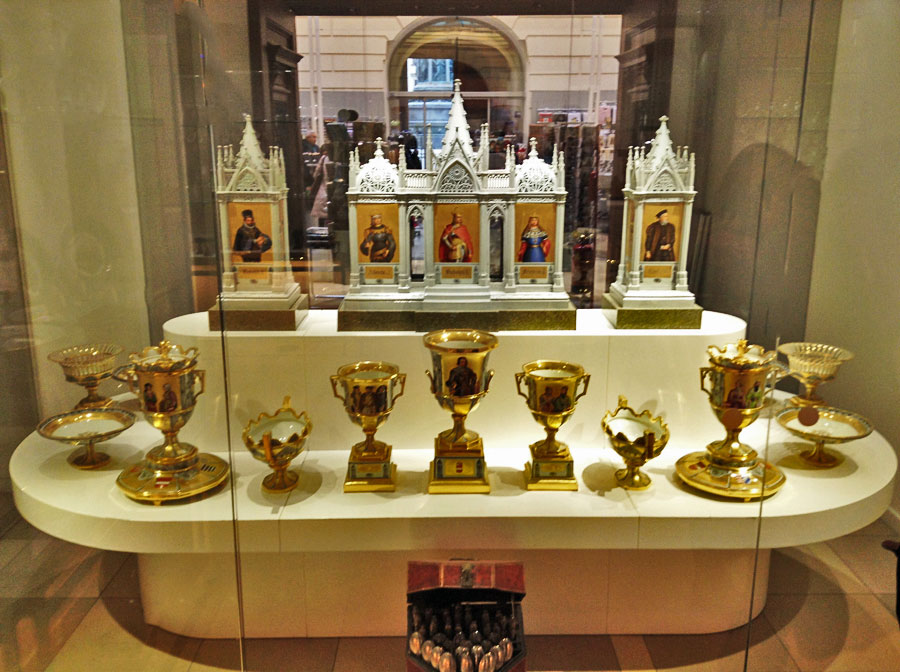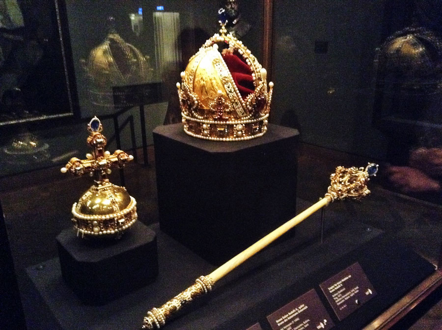 The Imperial Treasury is affiliated with the Kunsthistorisches Museumt , and houses in 21 rooms a collection of rare treasures that were compiled by the Imperial House of Habsburg over the course of centuries, including the Imperial Crown , Orb, and Sceptre of Austria, and the Imperial Regalia of the Emperors and Kings of the Holy Roman Empire including the Imperial Crown of the Holy Roman Empire. I