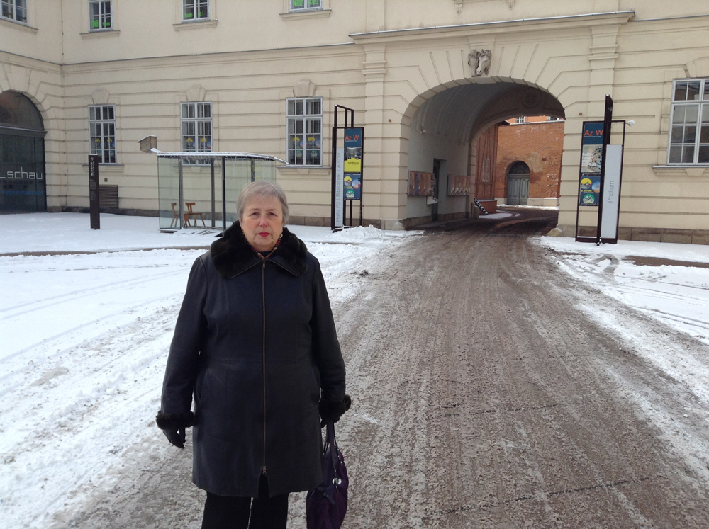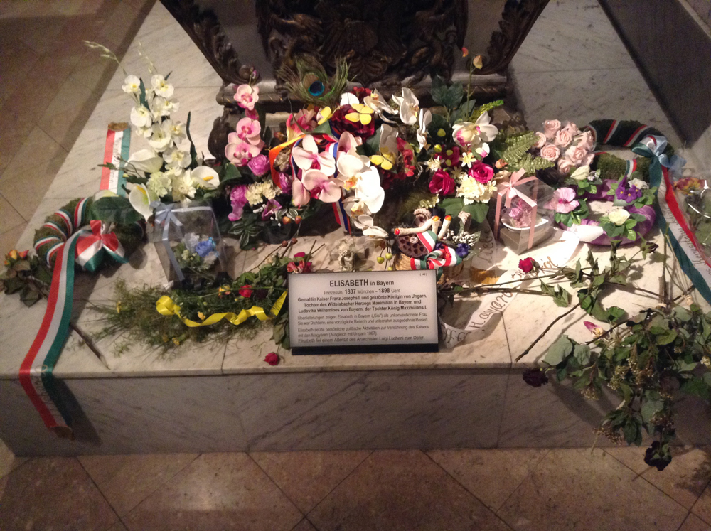Judy in front of Empress Elisabeth of Austria’s coffin (also know as “Sisi”)