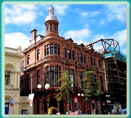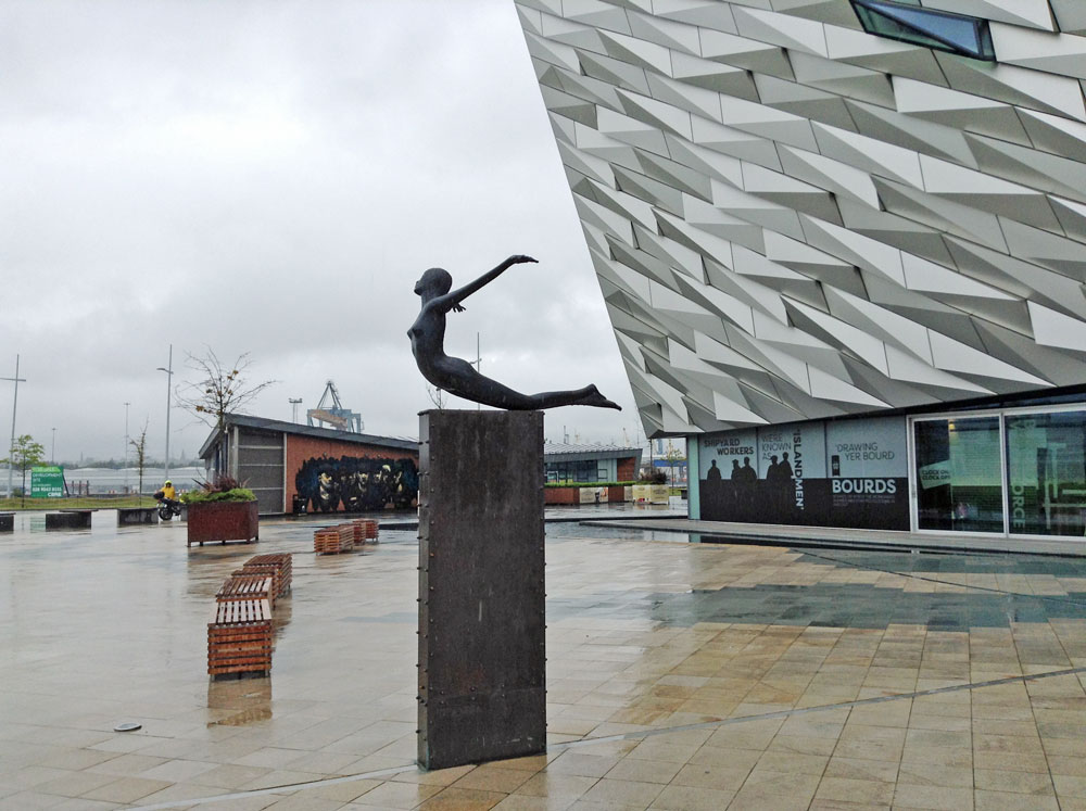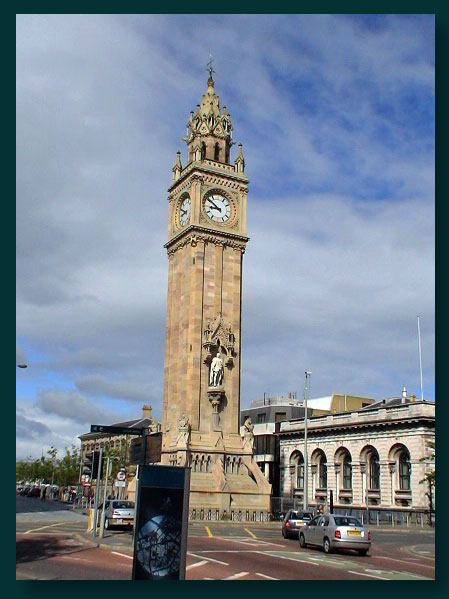 Belfast was the engine-room that drove the whirring wheels of the industrial revolution in Ulster. The development of industries like linen, ropemaking and shipbuilding doubled the size of the town every ten years. The world’s largest dry dock is here and the shipyard’s giant cranes tower over the port. This tower, once you’ve twisted your head in the right direction, is leaning…So Belfast also has its leaning tower of Pisa…