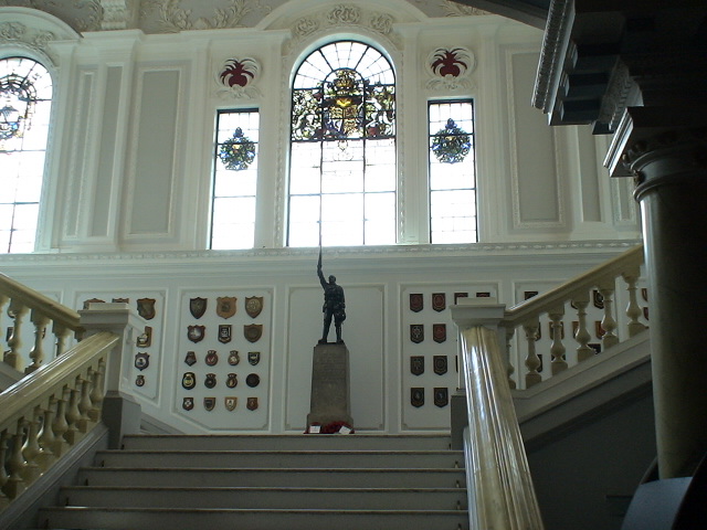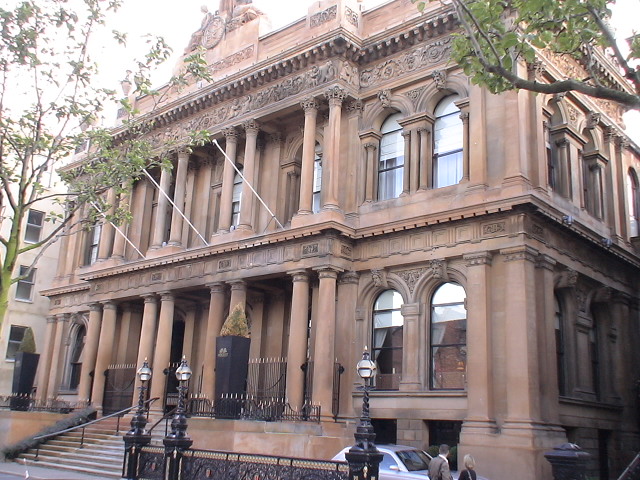 There are many Victorian and Edwardian buildings with elaborate sculptures over doors and windows. Stone-carved heads of gods and poets, scientists, kings and queens peer down from the high ledges of banks and old linen warehouses. This is one example.
