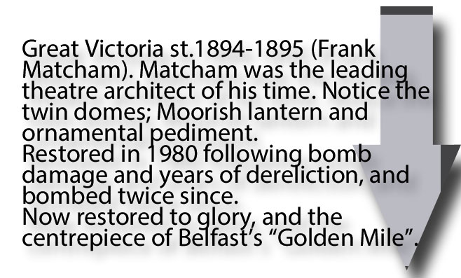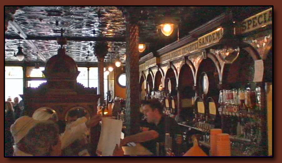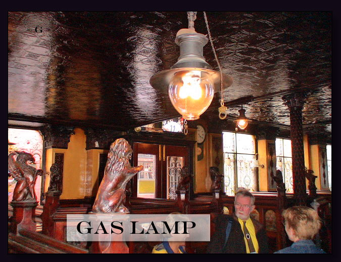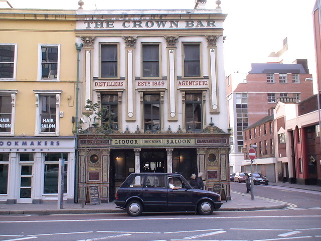 The Crown Bar with its Victoria-era gas-fired lamps. I had a couple of pints of Guinness in that establishment.