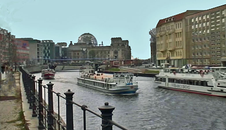 The main hall of the parliament below can also be seen from the cupola, and natural light from above radiates down to the parliament floor. A large sun shield tracks the movement of the sun electronically and blocks direct sunlight which might blind those below. Due to time constraints, we were not able to enter the building and walk around in the dome. That will be for another visit.