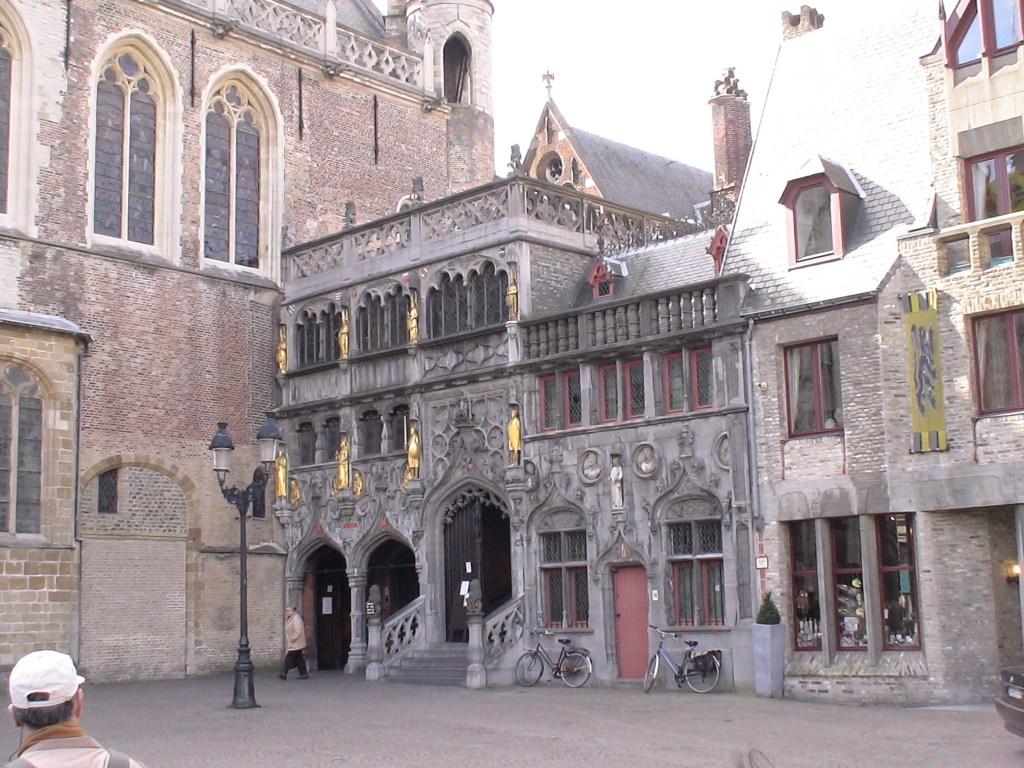 H.-Bloedbasiliek: Double chapel. On ground level : St. Basil’s Chapel (1139-1149) in roman style. The first floor chapel, converted into Gothic style in the 15th century, contains a.o. the famous Relic of the Holy Blood brought back by the Crusaders.