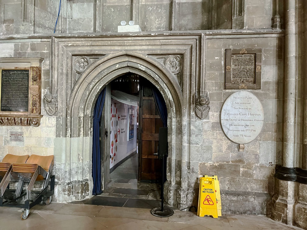 During the bombing raids of the WW II its library was destroyed, but the cathedral did not sustain extensive bomb damage; the local Fire Wardens doused any flames on the wooden roof.
