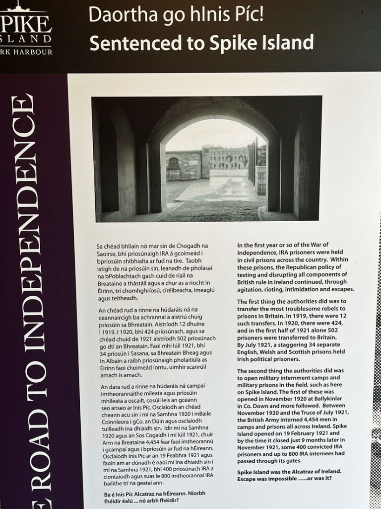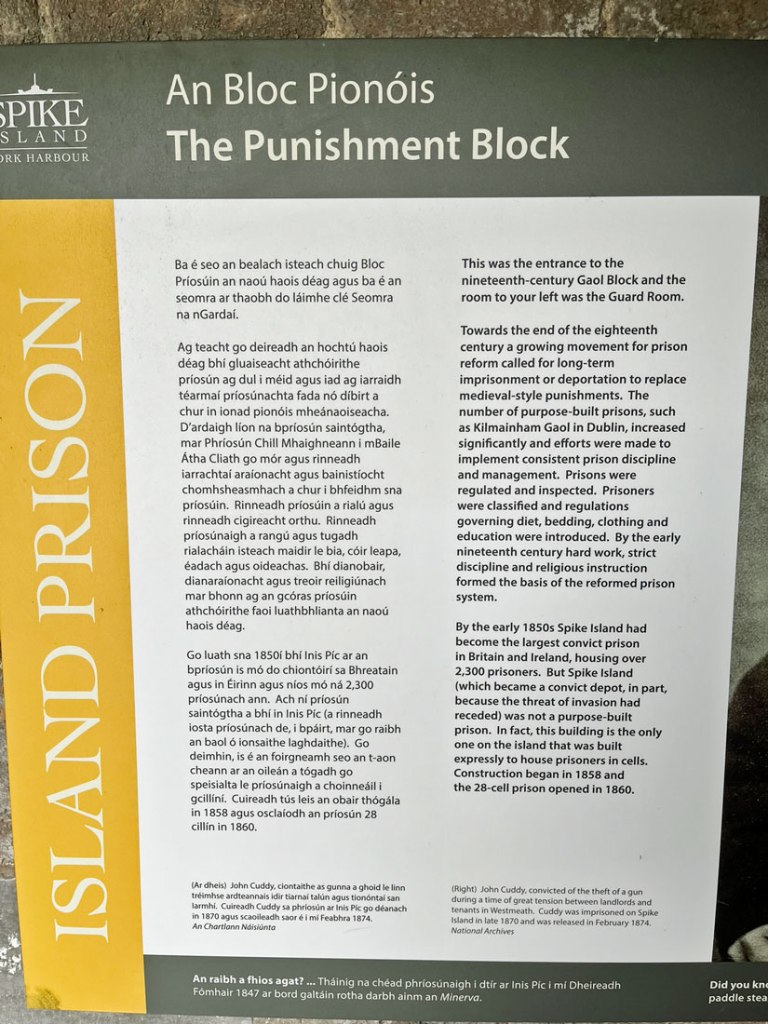 Later a prison and convict depot, the island was used to house convicts prior to penal transportation. Opened in 1847 to deal with growing number of convictions for theft during the great Famine, the prison grew into what “for a few years in the mid-19th century [..] was probably [..] the biggest prison in the British Empire”. It later gained a reputation as “Ireland’s Alcatraz”.