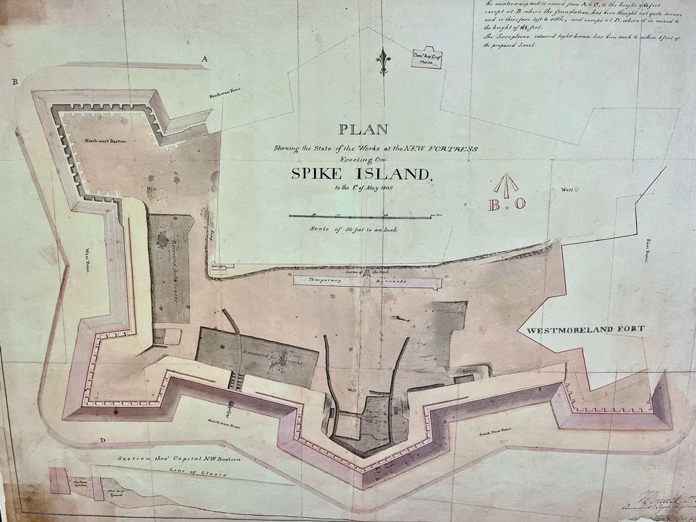 The first artillery fortification on the island was built in 1779. Its construction was prompted by the outbreak of the American revolution in 1775, and in particular by the entry of France (1778) and Spain (1779) into the war on the American side. Cork Harbour was used as an assembly point for convoys to the Americas and at one point more than 400 vessels were assembled in the harbour. Additionally, Cork was a source of supplies for the British forces operating in the West Indies and North America. There was, therefore, a need to protect the harbour from potential attackers. The Spike Island Battery was a temporary work and armed with eighteen 24 pounder cannon moved from Cobh Fort . After the Treaty of Paris ended the war in 1783, this temporary work was demolished.
