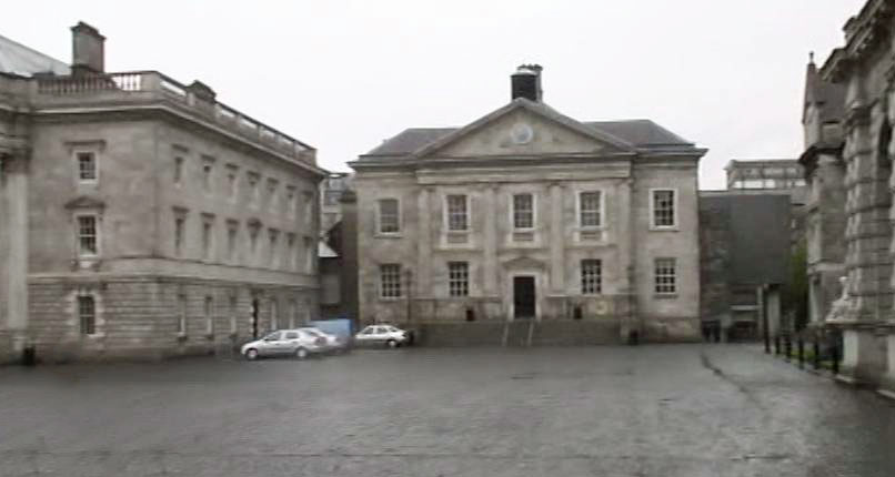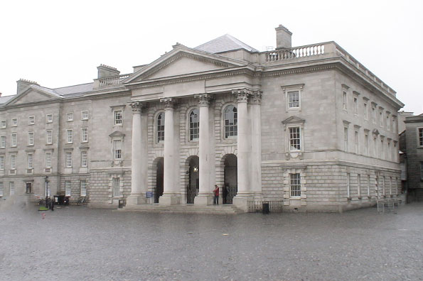 Side entrance to Trinity College located across from the Library.