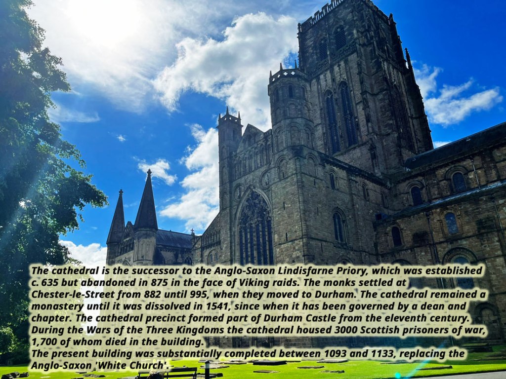 Durham was founded in 995 by Anglo-Saxon monks seeking a place safe from Viking raids to house the relics of St Cuthbert. The church the monks built lasted only a century, as it was replaced by the present Durham Cathedral after the Norman Conquest together with Durham Castle it is a UNESCO World Heritage Site.
