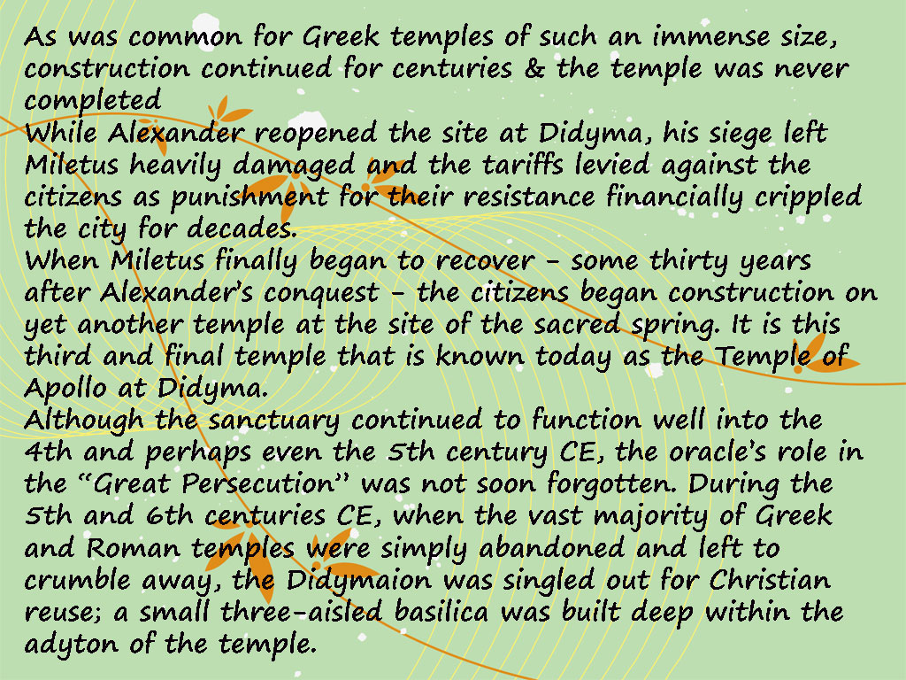 The importance of the city as a commercial centre declined as the harbour slowly filled with silt from the river (today, Küçük Menderes) despite repeated dredges during the city’s history.