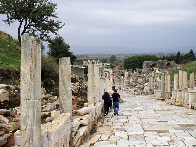 The road to the port where Cleopatra once rode down… She spent some time in Ephesus. In those days the sea was much closer. The port was located at the end of this path.