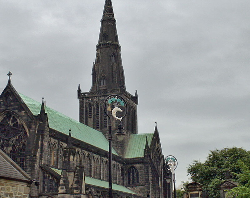 Glasgow Cathedral, also called the High Kirk of Glasgow, is today a Church of Scotland Cathedral. It is located just outside of the city center beside Glasgow Royal Infirmary. The history of the cathedral is linked with that of the city, and is allegedly located where the patron saint of Glasgow, Saint Mungo built his church.