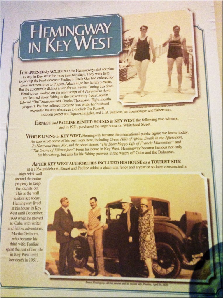 This was a glimpse into Hemingway’s life in Key West. For all those years of hearing and reading about him, not to mention watching biographies and reading most of his books, it was a pleasure to visit the place where he created all those great novels. Not to mention he fascination with all those cats…
