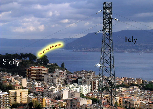 The Pylons built in 1957 for a 220kV-overhead powerline across the Strait of Messina. (Sicily and the mainland) At the time of its construction, the two pylons were the highest in the world. This powerline has since been replaced by an underwater cable, but the pylons still remain, protected as historical monuments.