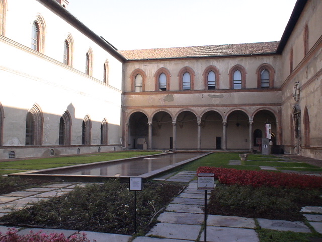The original construction on the site began in the 14th century. In 1450, Francesco Sforza began reconstruction of the castle, and it was further modified by later generations. A number of these rooms originally had elaborated internal decoration – the best known of these being the Sala Delle Asse with surviving ceiling paintings by Leonardo Da Vinci.