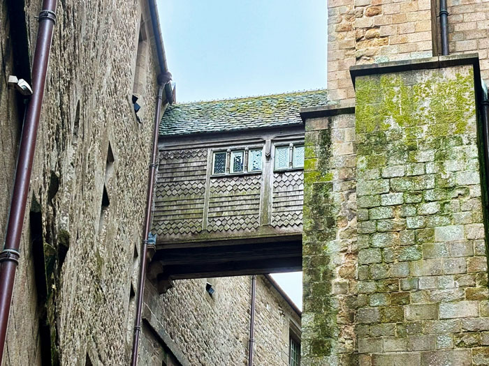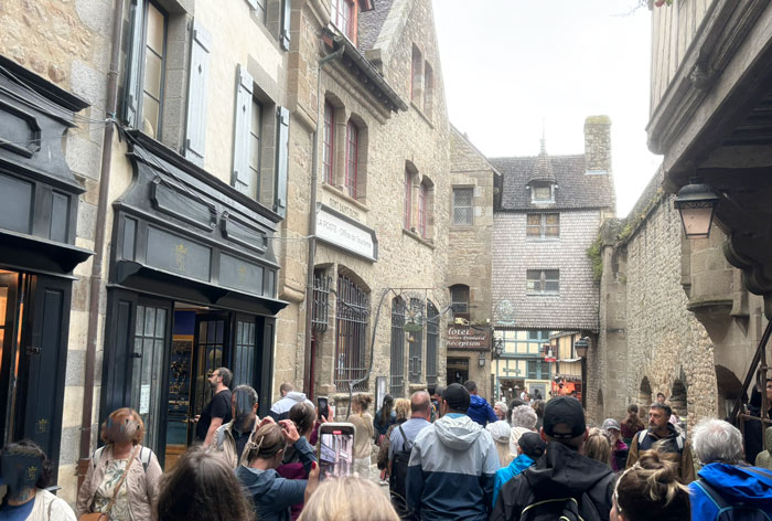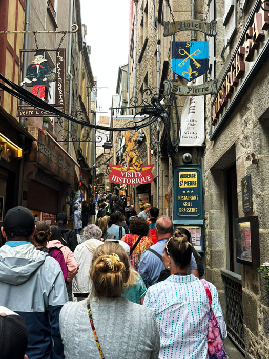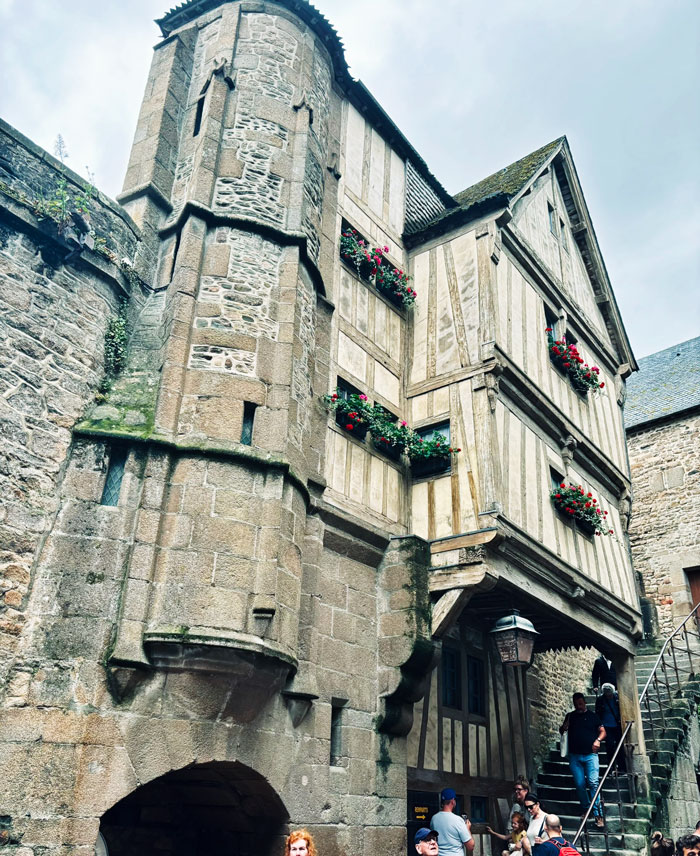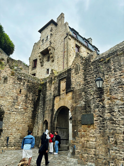 The commune’s position—on an island just a few hundred metres from land—made it accessible at low tide to the many pilgrims to its abbey, and defensible as the incoming tide stranded, drove off, or drowned threats on foot. The island remained unconquered during the Hundred Years’ War.