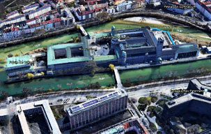 The main site of the Deutsches Museum is a small island in the Isar river, which had been used for rafting wood since the Middle Ages. The island did not have any buildings before 1772 because it was regularly flooded.