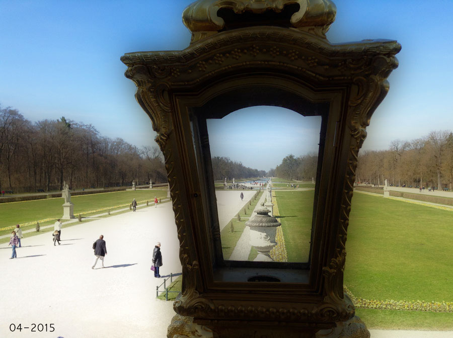 Beautiful manicured lawns and fountains built originally in the Italian style, then redesigned in the french style and finally in the English style. Parterre there are canals in the French Style, far as the eye can see