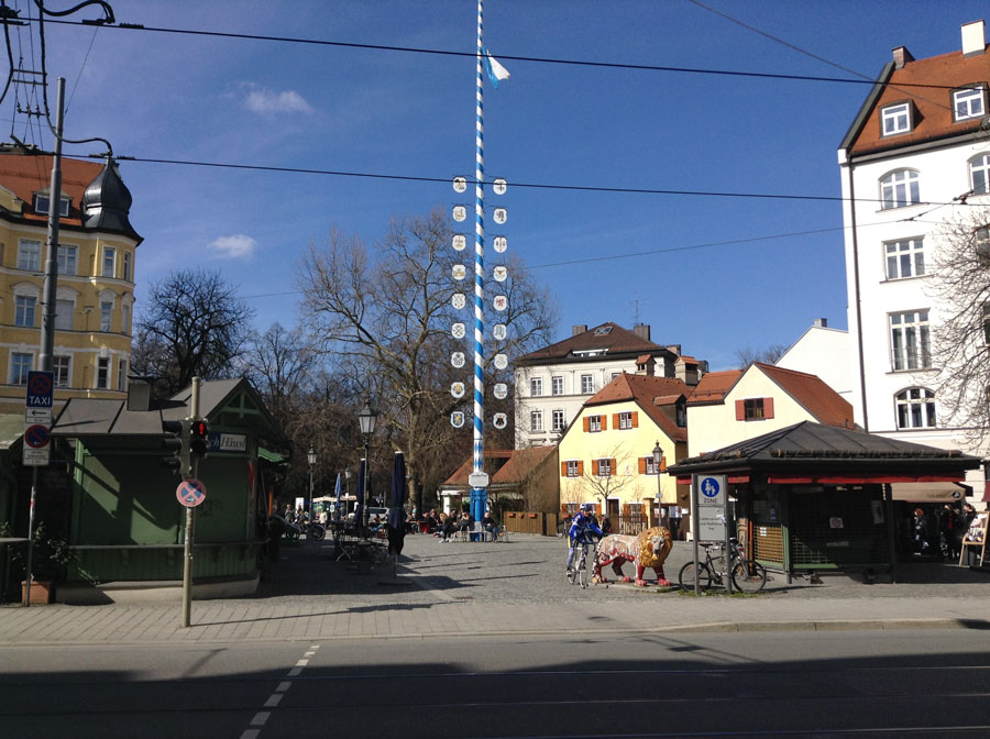 In every community in Bavaria and Austria has a huge maypole in the center of their village. In many places the trees are not only a symbol of tradition but reflect the crafts of the communities and towns. Craftsmen emblems are being applied at the trees, great to look at and representing the economic strength of the town.