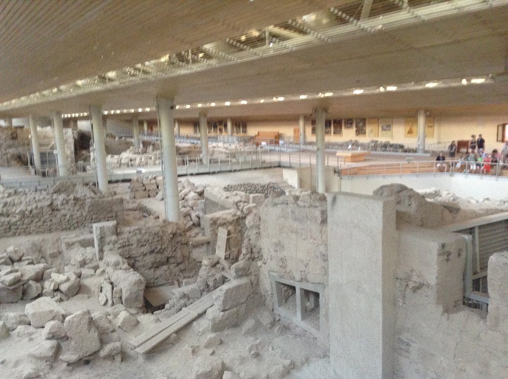 In 1967, excavations began at the site of Akrotiri. What they uncovered was phenomenal: an ancient Minoan city buried deep beneath volcanic ash from the catastrophic eruption of 1613 BC. Today, the site retains a strong sense of place. Housed within a cool, protective structure, wooden walkways allow you to pass through various parts of the city.
