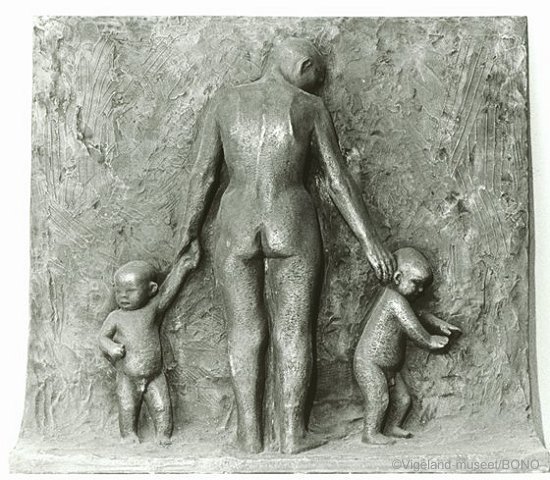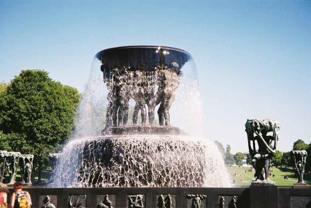 Originally designed to stand in front of Parliament (Eidsvolls Plass), the Fountain was fabricated from bronze and adorned with 60 individual bronze reliefs. Portraying children and skeletons in the arms of giant trees, the Fountain suggests that from death comes new life.