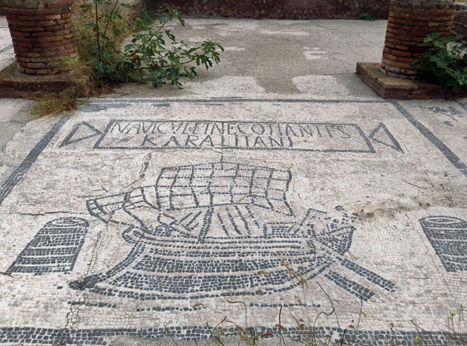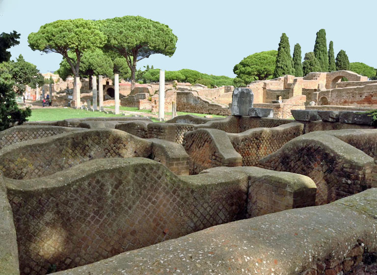 “Ostia” in Latin means “mouth”. At the mouth of the River Tiber, Ostia was Rome’s seaport, but due to silting the site now lies 3 kilometres from the sea. The site is noted for the excellent preservation of its ancient buildings, magnificent frescoes, and impressive mosaics.
