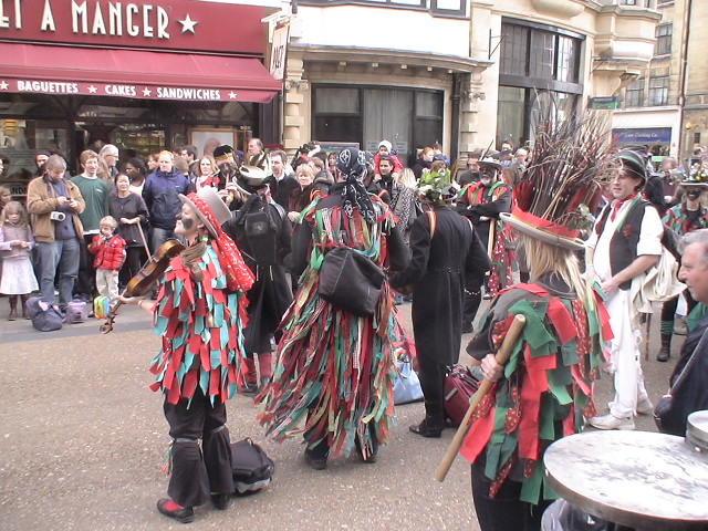 On the day we visited Oxford there was folklore festival in the streets of the old town. The next two pictures show a group from the Midlands doing their “thing”. It was very colorful.