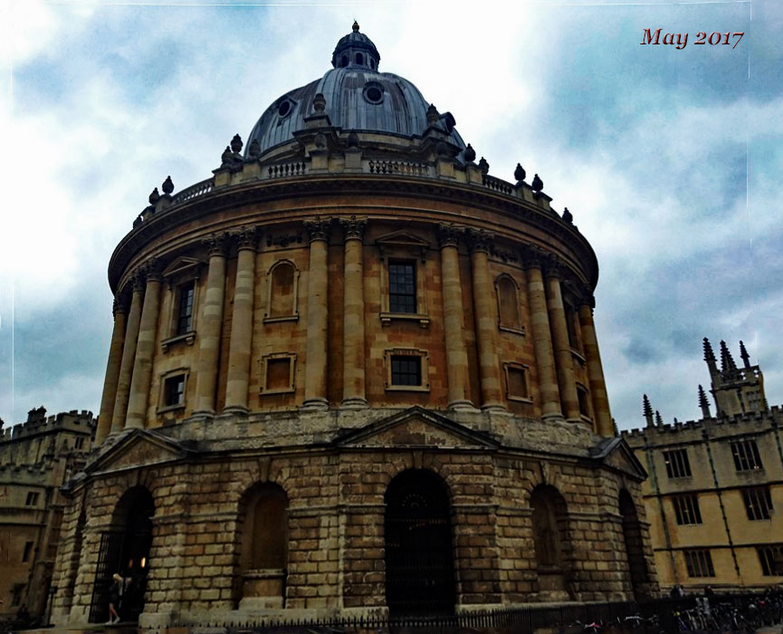 The Radcliffe Camera, built 1737-1749, holds books from the Bodleian Library’s English, History, and Theology collections. The word camera translates from Latin as “room” or “chamber.”
