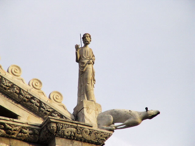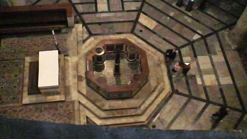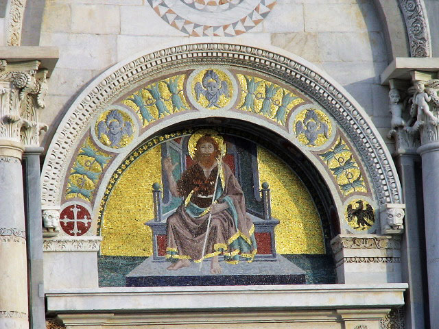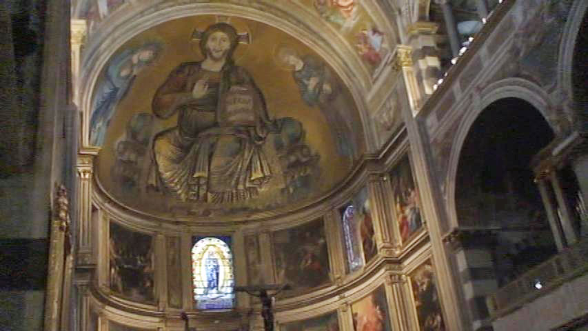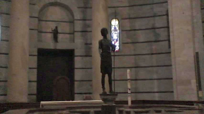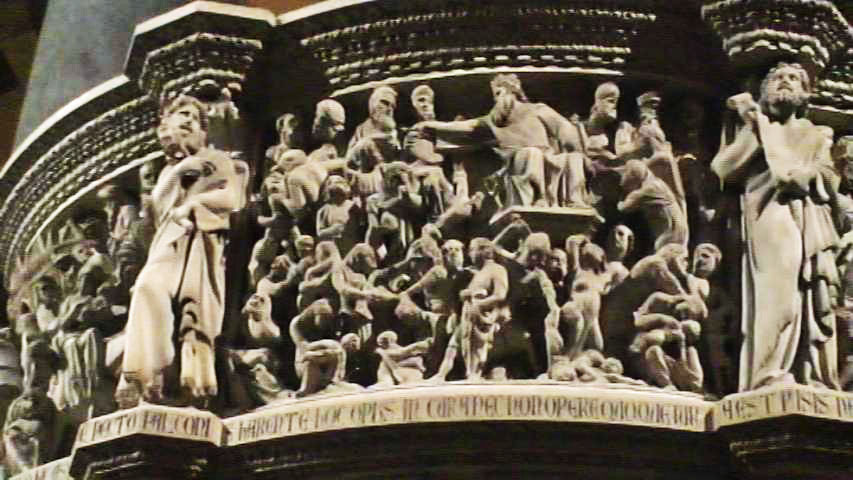 Giovanni Pisano’s pulpit (1302-11), widely regarded as a great masterpiece. It was not always so popular, however. Those who undertook the renovations after the 1595 fire thought the old Gothic pulpit was an eyesore, so they dismantled it and stored it in a crate. It was not rediscovered until 1926; it was reassembled and once again occupies its original place on the north side of the nave.