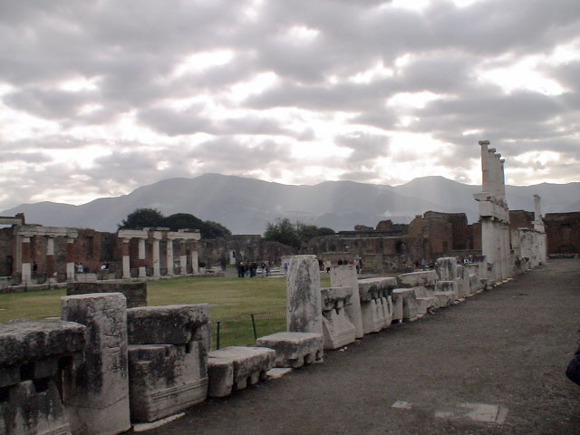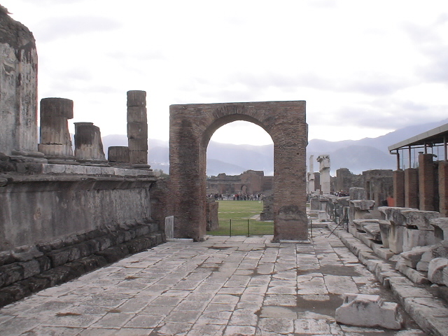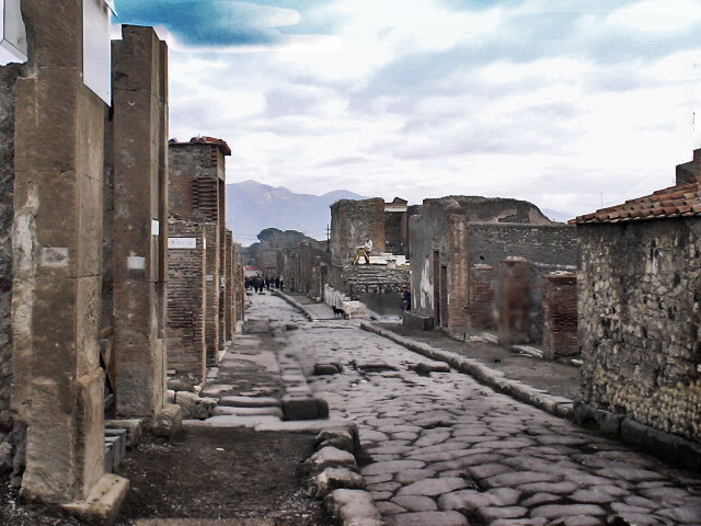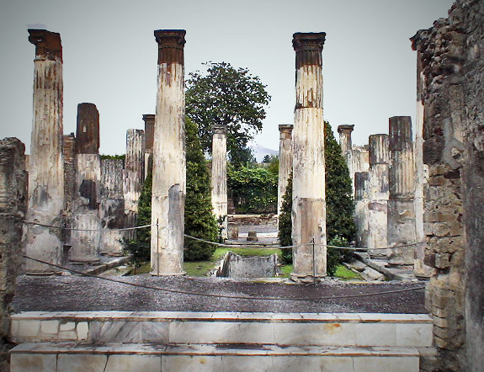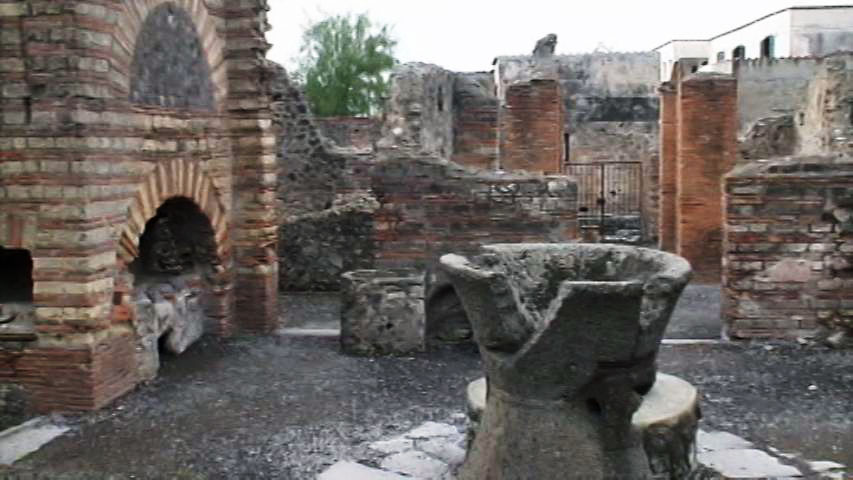 Pompeii, along with Herculaneum and many villas in the surrounding area was buried under 4 to 6 m of volcanic ash in the eruption of Mount Vesuvius in 79 AD.