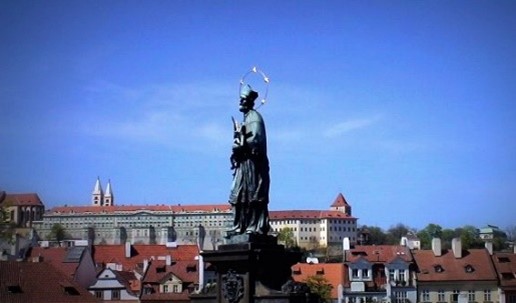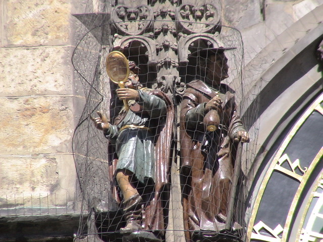 (Below) John of Nepomuk – a statue on the Charles Bridge. It is believed that it is good luck if you touch the two small statues on each bottom corner of the statue, hence the reason why the copper in those two spots is so shiny.