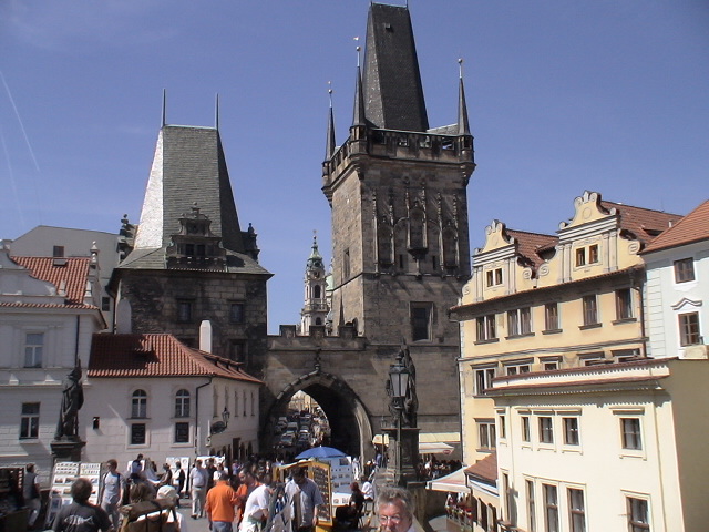 The Charles Bridge is a famous historical bridge that crosses the Vltava River.