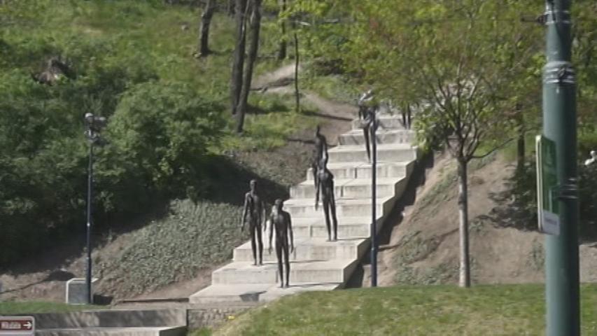 Notice the statues on the steps… Steps going up to the Castle.