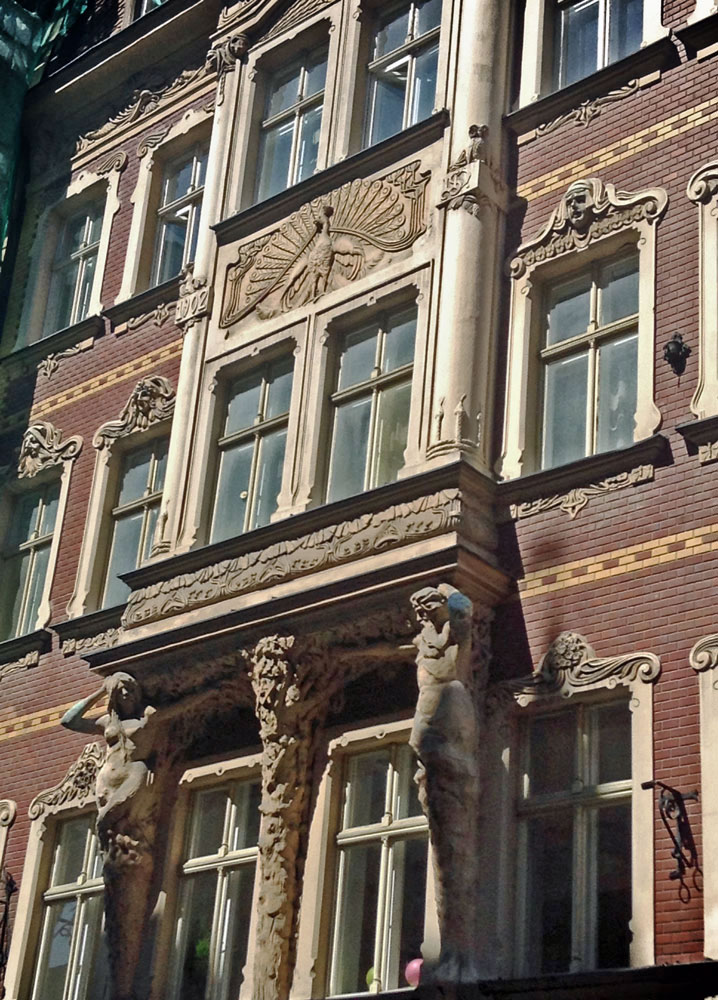 The Cat House is a building situated in the old town of Riga. It was built in 1909 according to the blueprint of architect Friedrich Scheffel. The building is styled as medieval architecture with some elements of Art Nouveau. It is known for the two cat sculptures with arched backs and raised tails on its roof. It is said that the owner of the house wanted the cats to be placed with their tails turned towards the house of the Great Guild, which is nearby, as he held a grudge against its members. It was later ordered that cats should be turned to face the guildehouse.