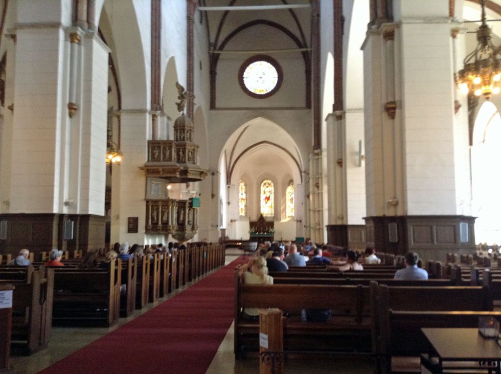 The organ of the Riga Cathedral was built by E.F. Walcker and Sons in 1882?83,and was inaugurated on 31 January 1884. It has four manuals and one pedalboard. It plays 116 voices, 124 stops, 144 ranks, and 6718 pipes. It includes 18 combinations and General Crescendo. A tape of Latvian composer Lucija Garuta playing the organ for a cantata during World War II captured the sound of battle nearby. We were provided with a short. but delightful organ recital during our visit.