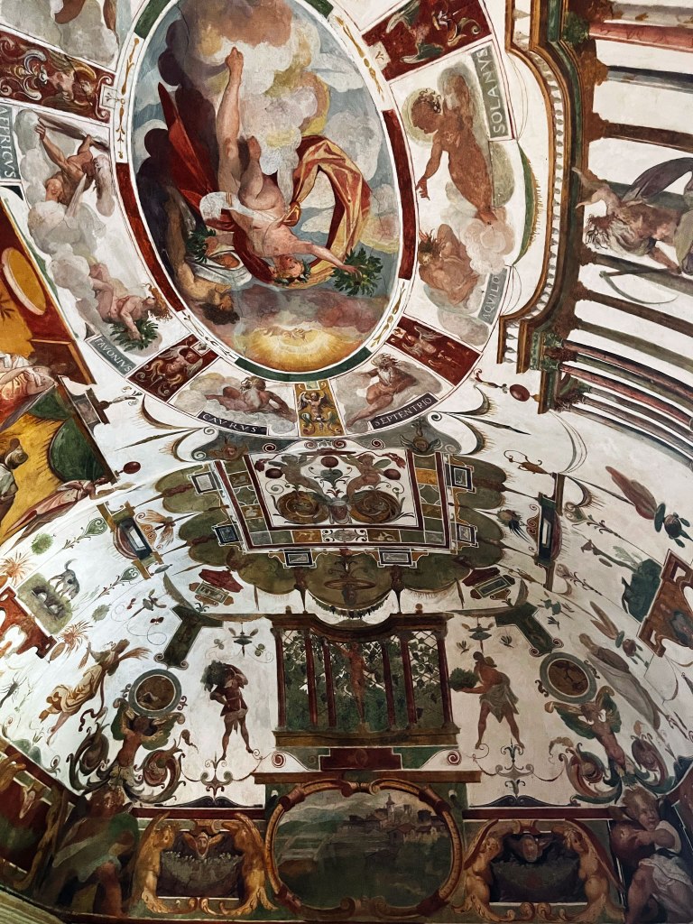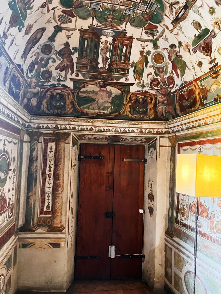 A series of grand gardens recalled the botanical gardens created at Pisa and at Florence by the Cardinal’s father, sheltered in plantations of pines, cypresses and oaks. Ferdinando de’ Medici had a studiolo, a retreat for study and contemplation, built to the north east of the garden above the Aurelian wall.