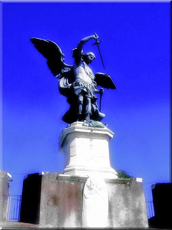 At the top of the Castel Sant’Angelo, the Archangel Michael stands mighty and proud, sheathing his sword.