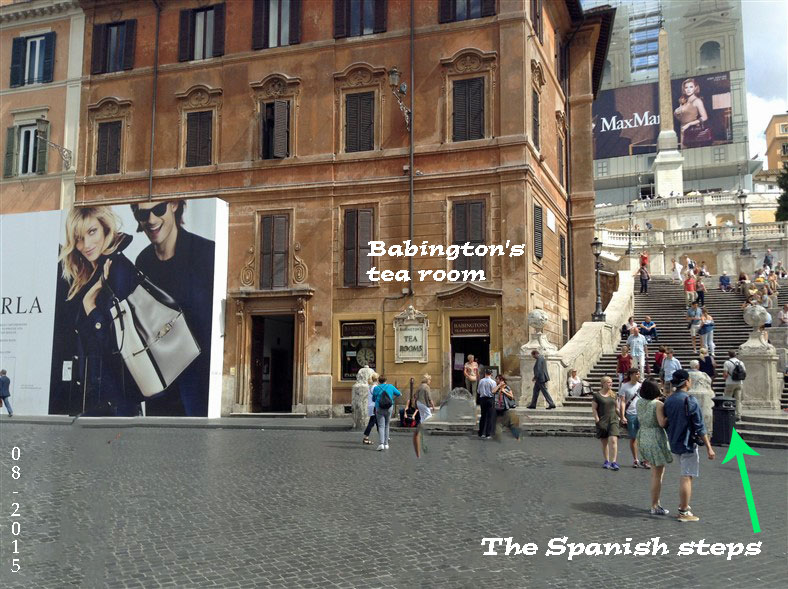 The tea room itself was founded by two young English ladies who arrived in Rome in 1893. They were Isabel Cargill, daughter of Captain Cargill, founder of the city of Dunedin in New Zealand and Anna Maria Babington, descendant of Antony Babington who was hanged in 1586 for conspiring against Elizabeth I.