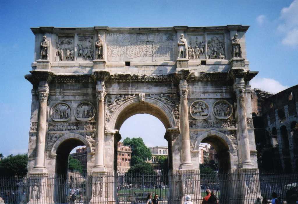 The white marble Arch of Septimius Severus at the northeast end of the Roman Forum is a triumphal arch dedicated in AD 203 to commemorate the Parthian victories of Emperor Septimius Severus and his two sons, Caracalla and Geta, in the two campaigns against the Parthians of 194-195 and 197-199.