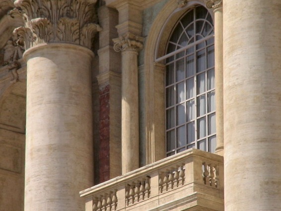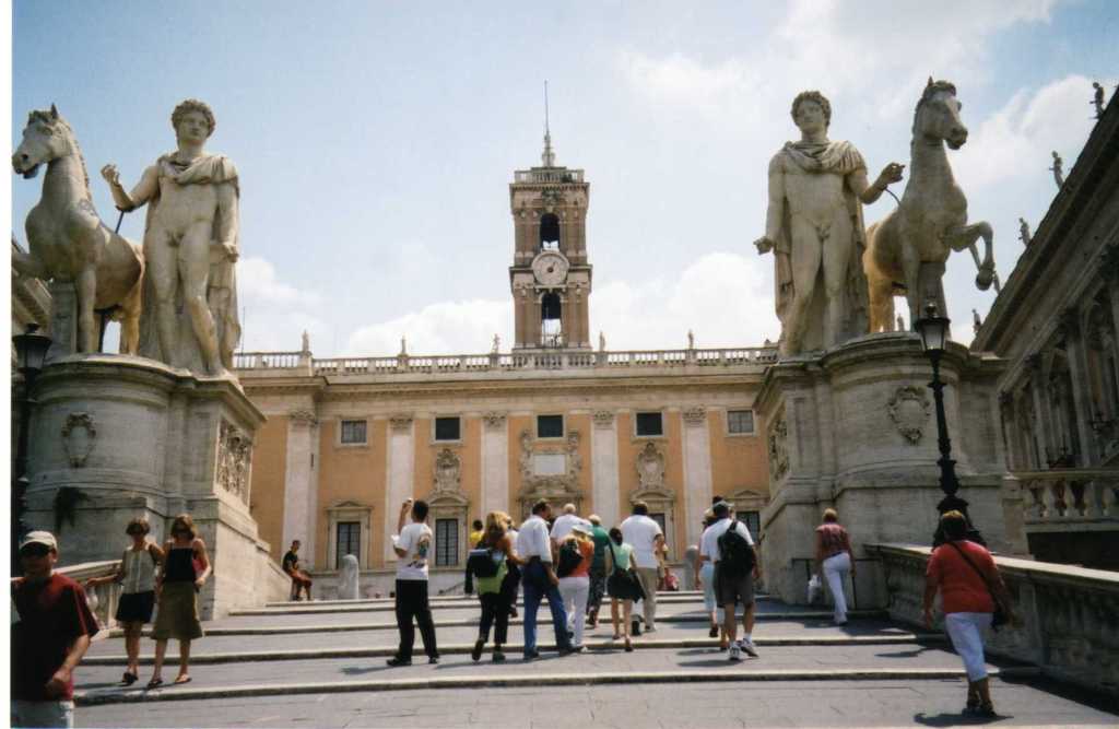 The Palazzo dei Conservatori was built in the Middle Ages for the local magistrate on top of a sixth century BC temple dedicated to Jupiter “Maximus Capitolinus”. It was the first use of a giant order that spanned two storeys, here with a range of Cornthean pilasters and subsidiary Ionic columns flanking the ground-floorloggia openings and the second-floor windows. Another giant order would serve later for the exterior of St-Peter’s Basilica. Its facade was updated by Michelangelo in the and again later numerous times 1530s.