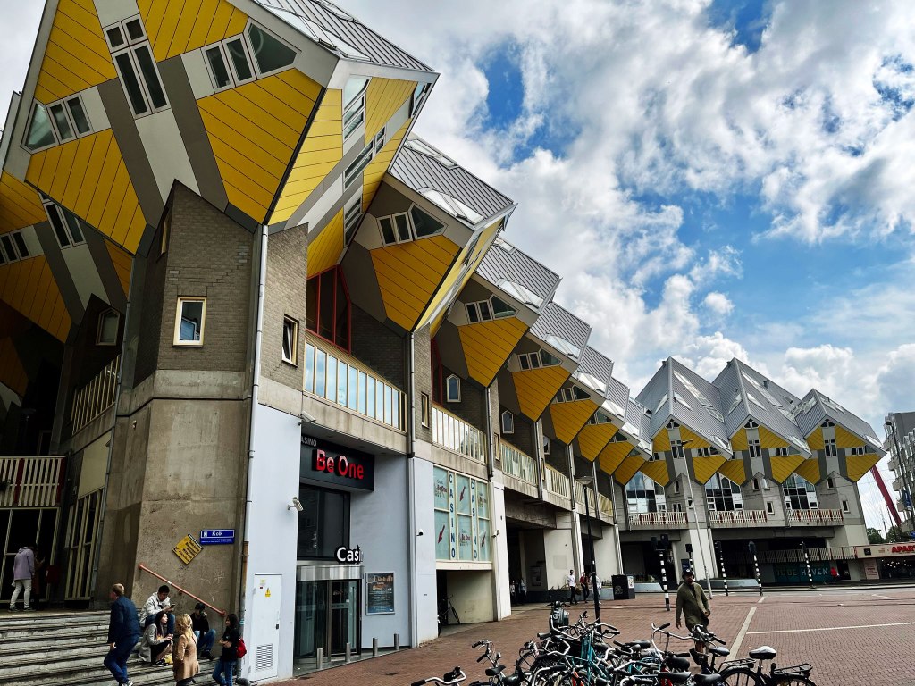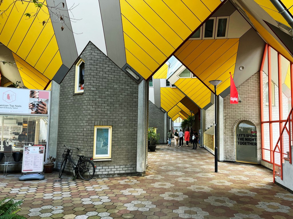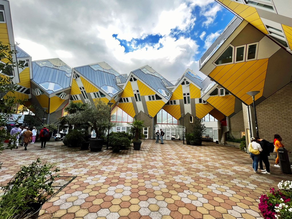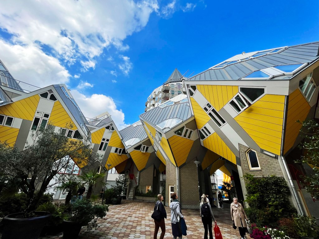 Cube houses are a set of innovative houses based on the concept of “living as an urban roof”: high density housing with sufficient space on the ground level, since its main purpose is to optimise the space inside. The design represents a village within a city, where each house represents a tree, and all the houses together, a forest. The central idea of the cube houses around the world is mainly optimizing the space, as a house, to a better distribution of the rooms inside