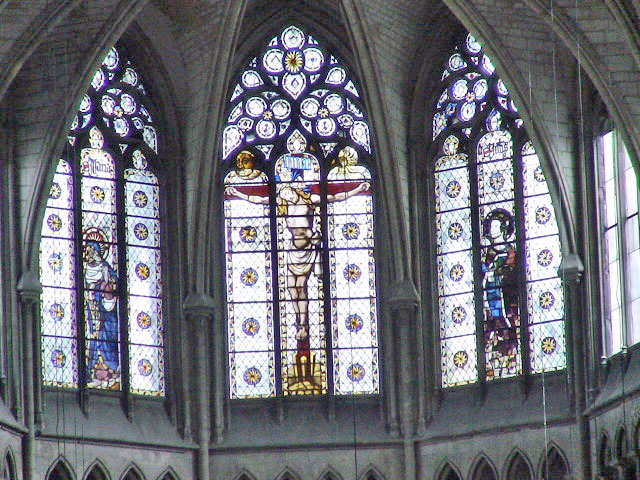A complete reconstruction of the cathedral was begun by his successor, Gautier the Magnificent. in 1185 he demolished the Romanesque nave and began building the western end of the sanctuary. He had completed the west front and first traverses when the work was interrupted by a major fire on Easter eve in 1200, which destroyed a large part of the town and seriously damaged the unfinished church and its furnishings. Gautier quickly repaired the damage and resumed the work, which was directed by his master mason, Jean d’Andeli.