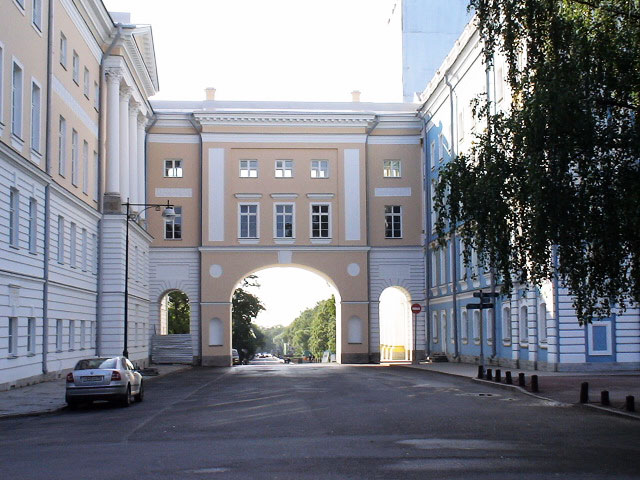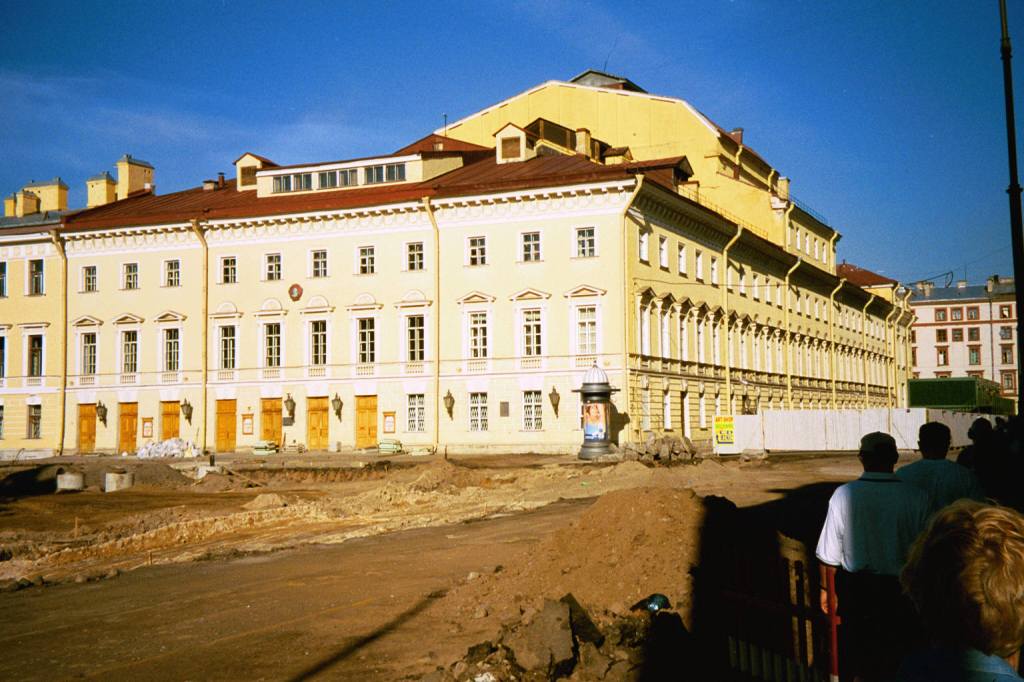 The building was commissioned from Giacomo Quarenghi by the Society for Education of Noble Maidens and constructed in 1806-08 to house the SmolnyInstitut of Noble Maidens, established at the urging of Ivan Betskoy in 1764 and borrowing its name from the nearby Smolny Covent. A nice garden and iron-work grille around the institute date from the early 19th century.