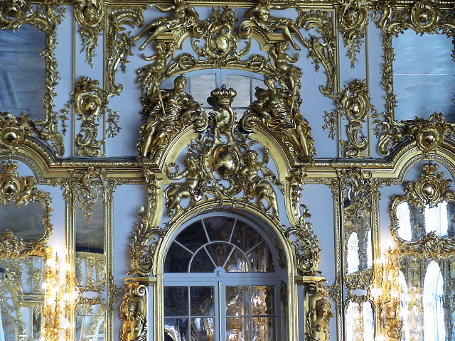 The palace is in the town of Tsarskoye Selo (Pushkin), 25 km south-east of St-Patersburg. Unilke Peterhorf, it is the interior that