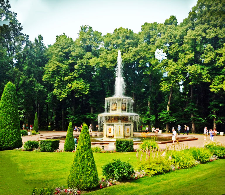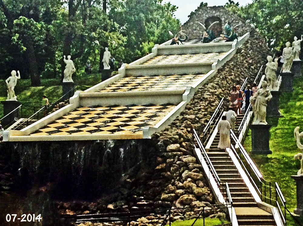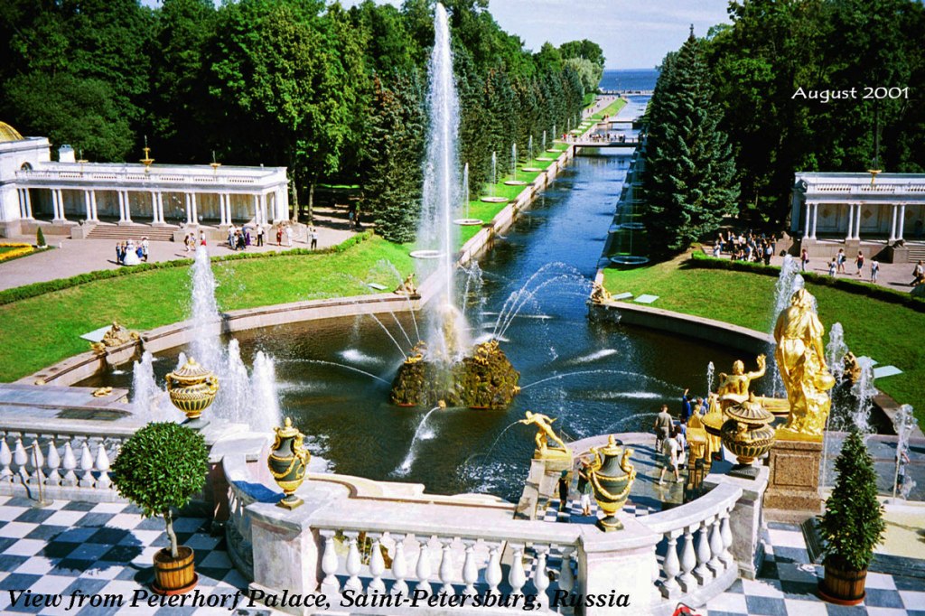 View of the fountains and gardens of the palace. They greatly admired the Versaille Palace and wanted to emulate it. It is a sight we will never forget, a sight of supreme beauty.