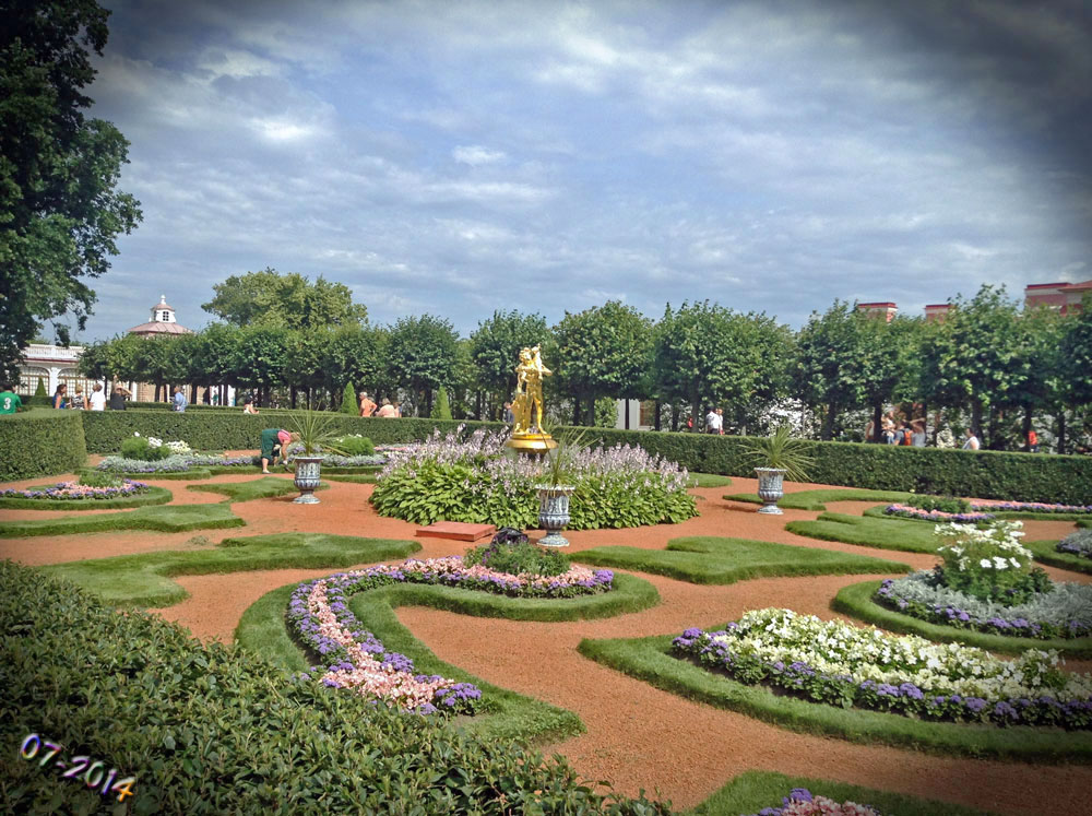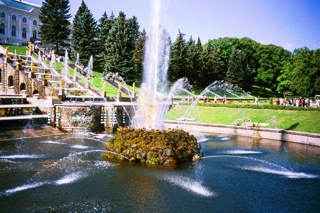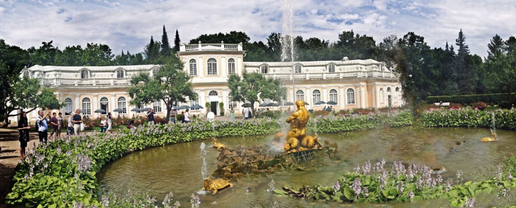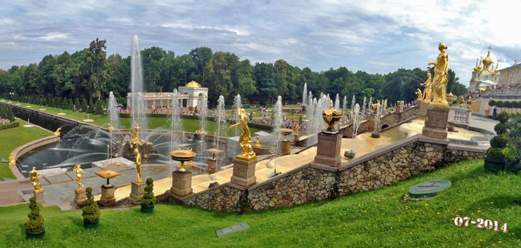 Peterhof is a municipal town withinPetrodvortsovy District of the federal city of Saint-Petersburg on the southern shore of the Gulf of Finland. It is a series of palaces and gardens, laid out on the orders of Peter the Great, and sometimes called the “Russian Versailles”.