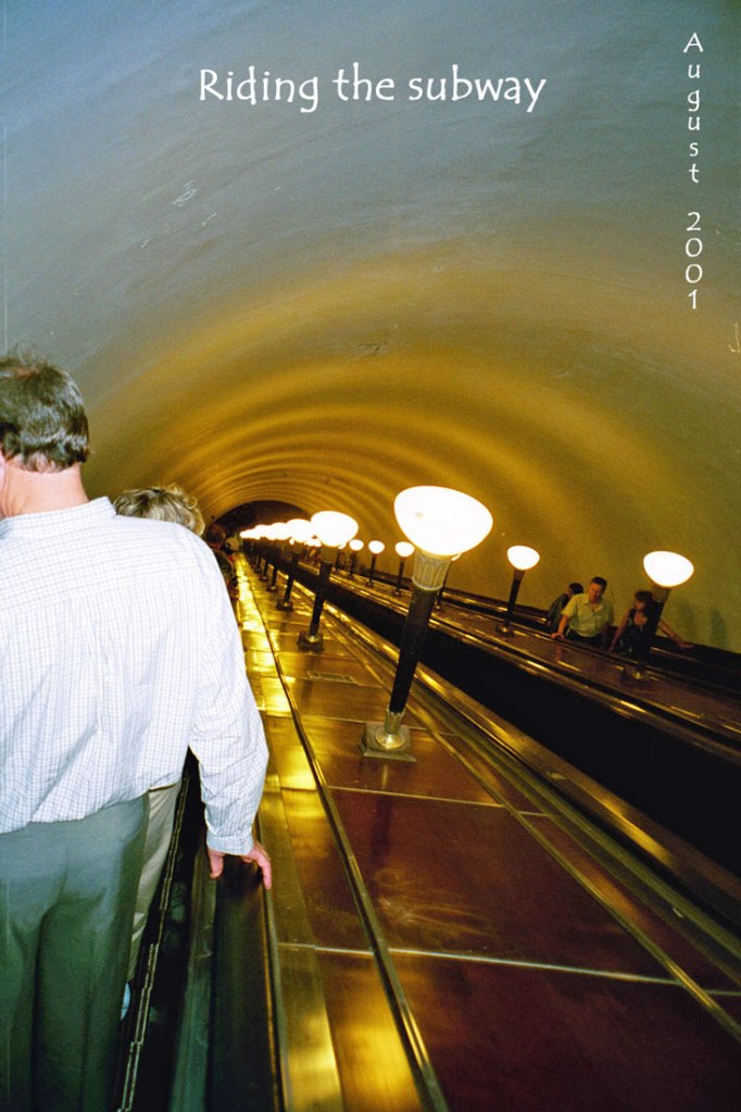 In the Saint-Petersburg subway on a Sunday morning. It cost only 10 rubbles to ride the subway.