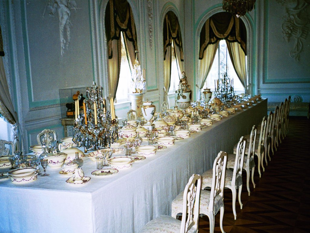 The residence originated in 1717, when Catherine I of Russia engaged a German architect to construct a summer palace for her pleasure. In 1733, Empress Anna expanded the Catherine Palace. Empress Elizabeth, however, found her mother’s residence outdated and incommodious and in May 1752 asked her court architect to demolish the old structure and replace it with a much grander edifice in a flamboyant Rococo style.