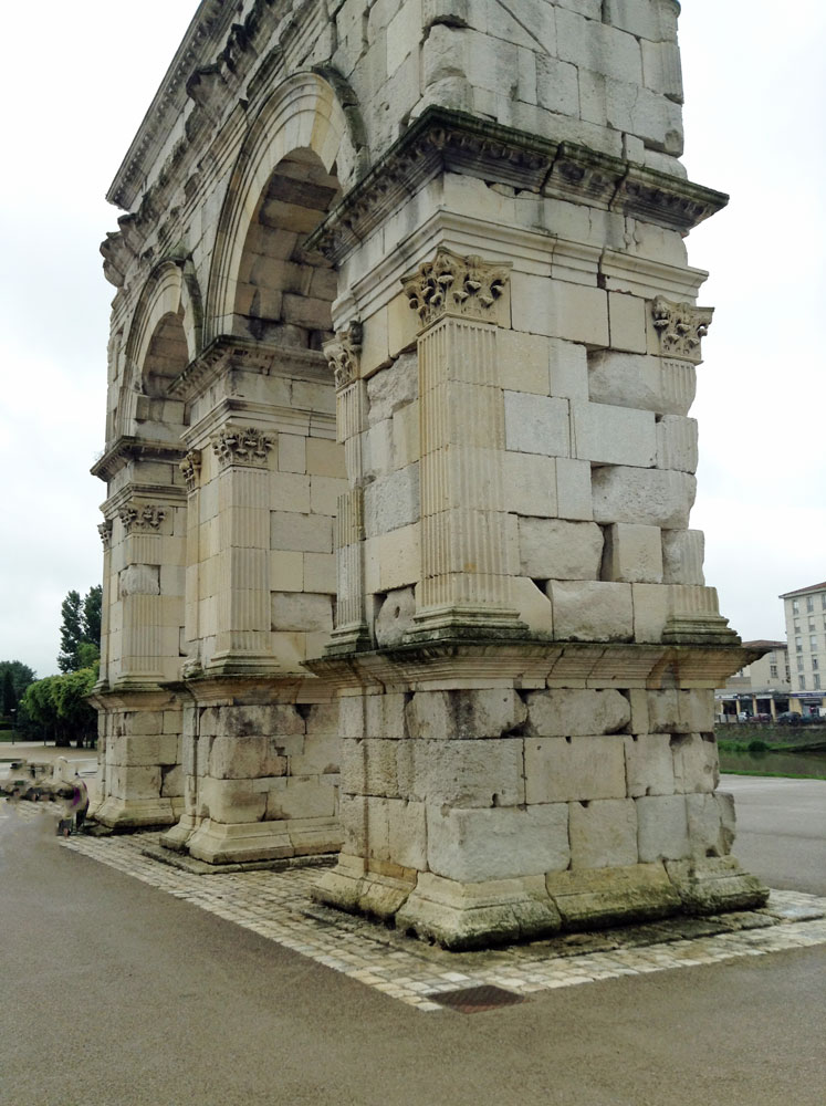 The Arch of Germanicus, a triumphal arch, was built at the entrance to a bridge, where the main Roman road crossed the Charente. The bridge was demolished in 1843 but the Arch was saved and rebuilt at its present location on the bank of the river.